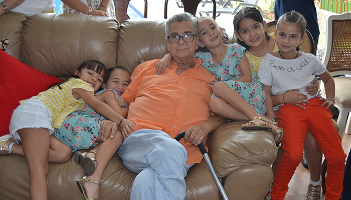 Gabriel Flórez Lemus rodeado de algunas de sus nietas, Catalina, Valentina, Sofía, Valeria y Luciana.