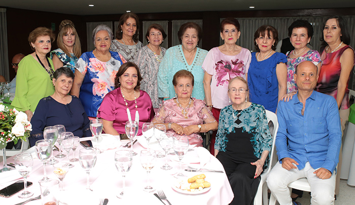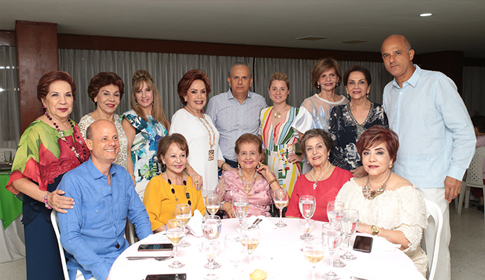 Merceditas de Hidalgo, Elsa de González, Claudia Noguera, Magali de Canal, Emilio Ramírez, Valentina Ramírez, Ligia de Haddad, Nassire Safi e Igor Ramírez. Sentados: Carlos Ramírez, Judith Amado, la cumpleañera Mariela Gómez de Ramírez, Martha Serrano de Benedetti y Mercedes de Becerra.