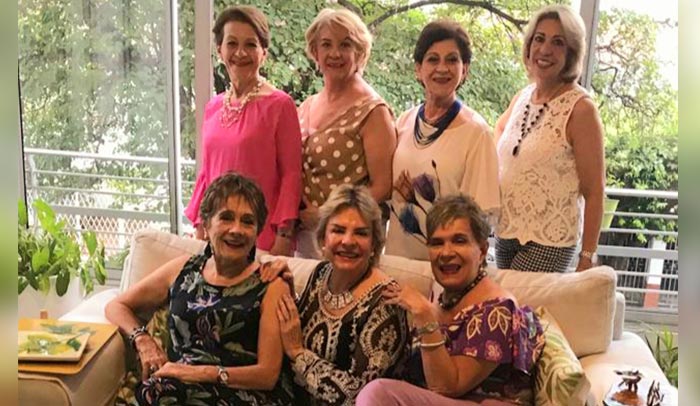 Myriam Durán, María Eugenia Durán Hernández y Clara Vargas Hernández. Sentadas: María Beatriz Blanco, María Ligia Vargas Hernández y Luz Estela Blanco.