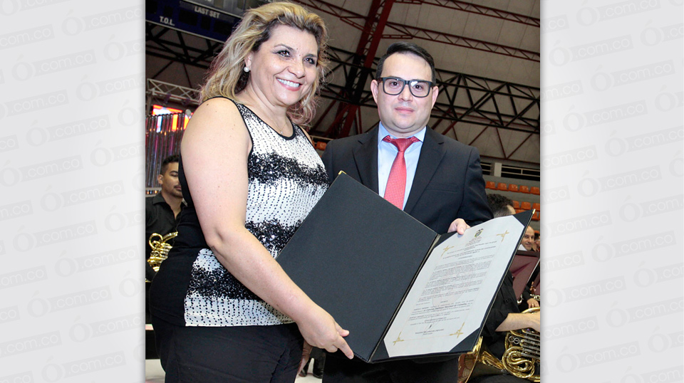 Claudia Franco, gerente de la Orquesta Sinfónica, y el secretario de cultura departamental, César Rojas Ramírez.