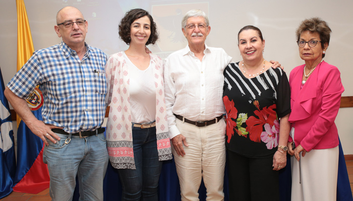 (Luis Fernando Macías, Janeth Posada, el escritor Jaime Restrepo, Carmen Elisa Araque, rectora de la Udes campus Cúcuta y Dione Sepúlveda.)