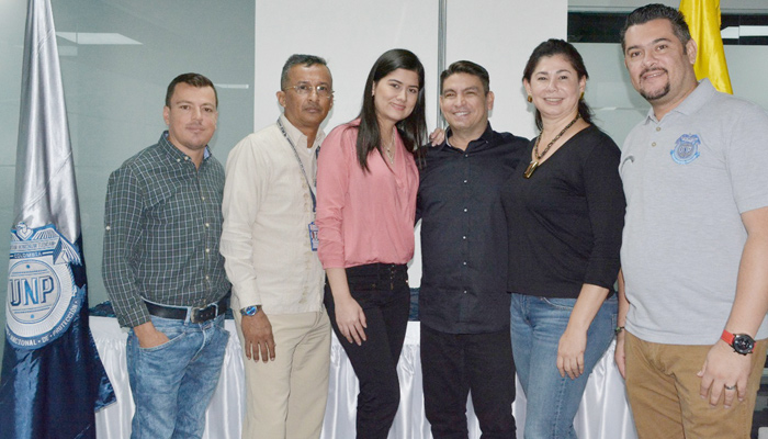 Álvaro Gáfaro, Wilmer Cuéllar, Belquis Villamizar, Juan Carlos Fernández, María Eugenia Navarro Pérez, secretaria general de la UNP; y Jair Granados.