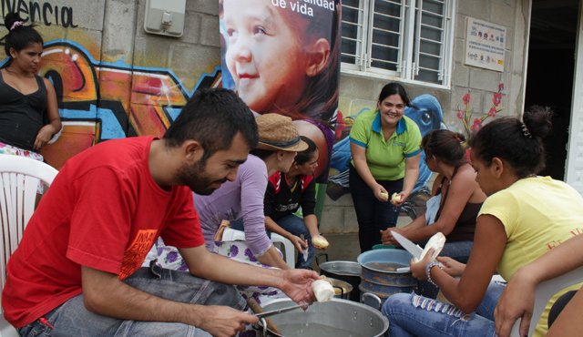 “Con esta actividad comunal buscamos comprometer a los padres con las acciones de sus hijos”, explicó Diana Montes, quien hace parte del proyecto. “Enlazamos el sancocho y la muestra cultural con el fin de que las familias se apoyen mutuamente”.