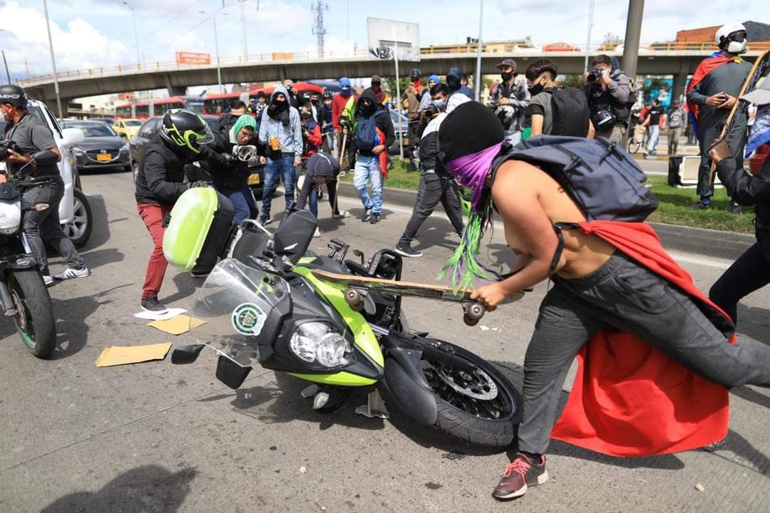 En Bogotá, las autoridades informaron de una afectación en el orden público en la Calle 26 con Carrera 30. Un grupo de encapuchados atacó y vandalizó una patrulla y algunas motos de la Policía Nacional. También bloqueó un carril de Transmilenio y los gestores de convivencia fueron agredidos. El Esmad hizo presencia en la zona.
