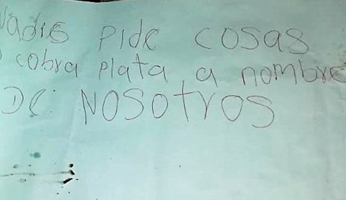 Los criminales dejaron dos carteles al lado de los cuerpos de las víctimas.