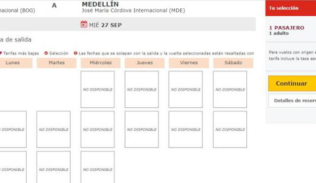 En la página web al intentar hacer una reserva para días cercanos no hay disponibilidad de vuelos.
