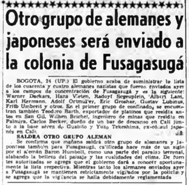 “Las causas de la concentración de estos súbditos alemanes se explica como consecuencia del estado de beligerancia en el que se encuentra Colombia desde 1943, y como una medida de precaución para evitar que la seguridad nacional o la seguridad internacional de los países aliados de Colombia en la guerra contra el Eje, puedan sufrir, eventualmente, perjuicios”, continúa la nota periodística.