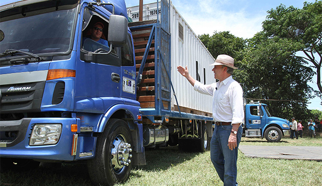 Santos, que estaba en mangas de camisa y sombrero, puso candado al contenedor con los últimos fusiles que recibió la misión de Naciones Unidas.