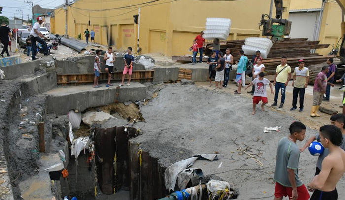 (Este es el colector de lluvias hacia donde fue arrastrado el vehículo.)