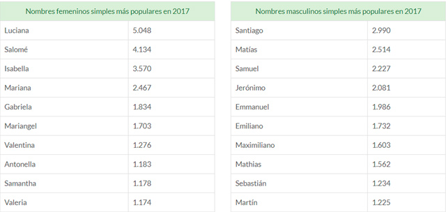 Salomé, Isabella, Mariana, Matías, Samuel y Jerónimo son los nombres que siguen en la lista de los más populares.