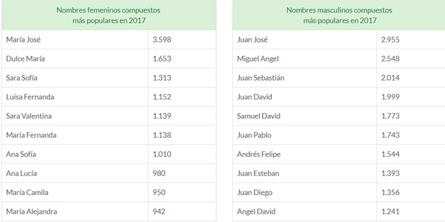 En el caso de Bogotá, los nombres más populares son Isabella, María José, Matías y Juan José. En Medellín, los padres se inclinaron más por Luciana, Dulce María, Emiliano y Miguel Ángel. En Cali, Luciana, María José, Matías y Juan José vuelven a lideran la lista. En Barranquilla los niños registrados en 2017 recibieron mayoritariamente por nombre Luciana, María José, Santiago y Samuel David.