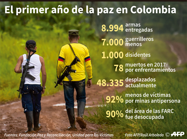 Éstos son algunos datos del primer año del pacto de paz que se negoció desde 2012 en Cuba, y que derivó en la creación del partido Fuerza Alternativa Revolucionaria del Común (Farc).