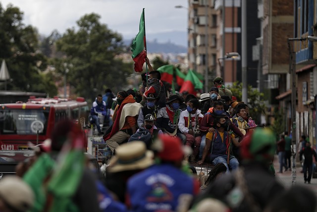 En Bogotá, las manifestaciones partieron desde el Parque Nacional, el Monumento a los Héroes y la Sevillana hacia la Plaza de Bolívar, lugar al que también partió la minga indígena para saludar la jornada de protestas y posteriormente partir nuevamente a sus territorios.