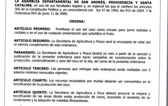 Una ordenanza de la Asamblea de San Andrés prohibió el uso del coco para servir bebidas y cocteles que son comercializados en la isla.