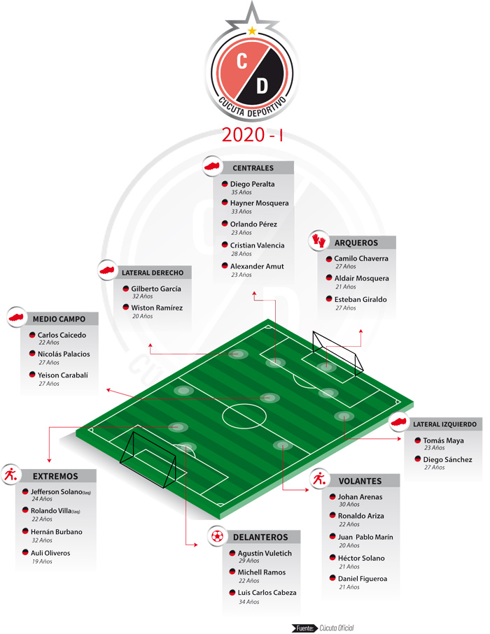 Diego Peralta, defensor central cucuteño, de 35 años y Gilberto ‘Alcatraz’ García, lateral derecho de 32, son los llamados a liderar, junto al capitán Chaverra, la plantilla de jugadores que más allá de lo deportivo, tendrán que sortear los problemas administrativos latentes en el club por los llamados del Ministerio del Deporte y la Supersociedades.