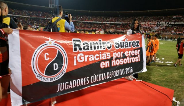 El hecho se generó por una pancarta con el mensaje: “Ramiro Suárez ¡Gracias por creer en nosotros! Jugadores del Cúcuta Deportivo 2018”, que se exhibió en la gramilla del estadio el día que el equipo alzó la copa del B.