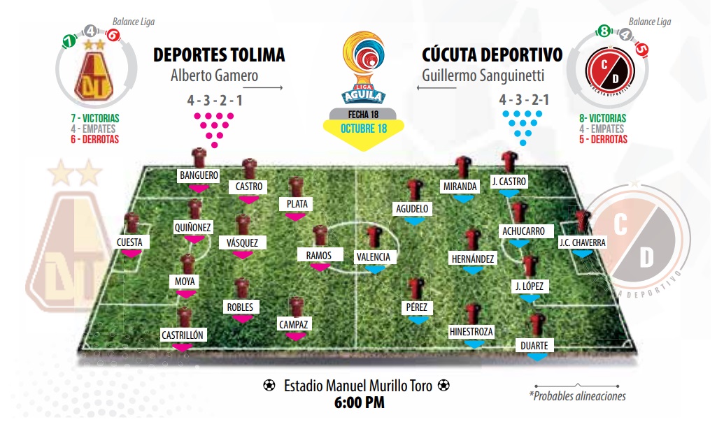 Actualmente Cúcuta es quinto en la clasificación general con 28 puntos a cinco puntos del líder que es Nacional, mientras que Tolima tiene 25 unidades y es octavo, por lo que ganar le significaría ascender en la clasificación.