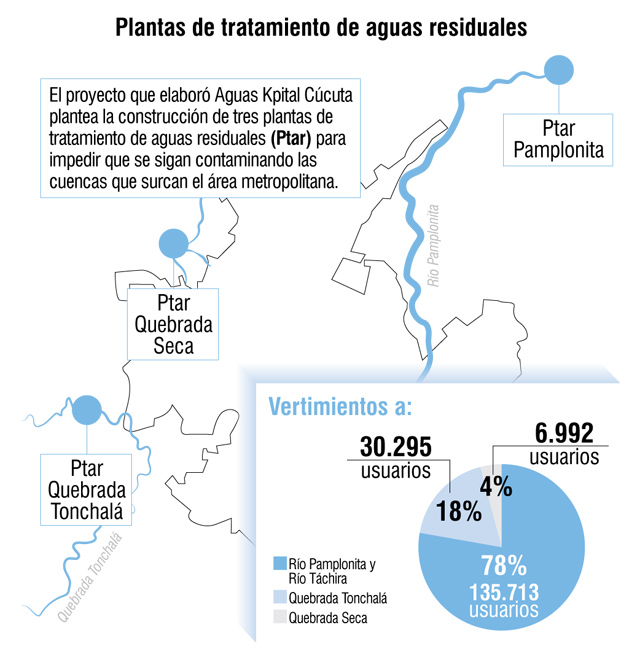 Aunque desde 1984 se habla de la construcción de las plantas de tratamiento de aguas residuales (ptar) en Cúcuta, solo hasta el presente año y a solicitud de la Alcaldía y de la Empresa de Acueducto y Alcantarillado EIS Cúcuta, la empresa Aguas Kpital estructuró lo que se aspira a que sea la solución para poner fin a la contaminación de los tres ríos de la zona.