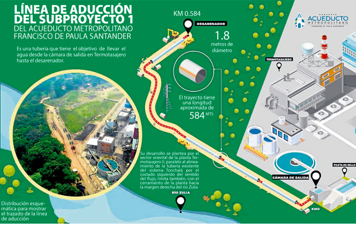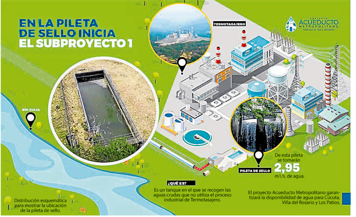 El recurso hídrico se captará en el municipio de San Cayetano (pileta de Termotasajero), hasta la planta de tratamiento de El Pórtico, y de aquí, se suministrará al almacenamiento de agua en los tanques elevados de los barrios 1 de Mayo en Villa del Rosario y Cumbres Bajas, en Los Patios. Los subproyectos 3 y 4 cuentan con los permisos inmobiliarios y ambientales para el desarrollo y ejecución de las obras, lo que no impidió el despegue de los trabajos. El alcance del sub proyecto 3 contempla la ampliación de la planta de tratamiento El Pórtico de Cúcuta.