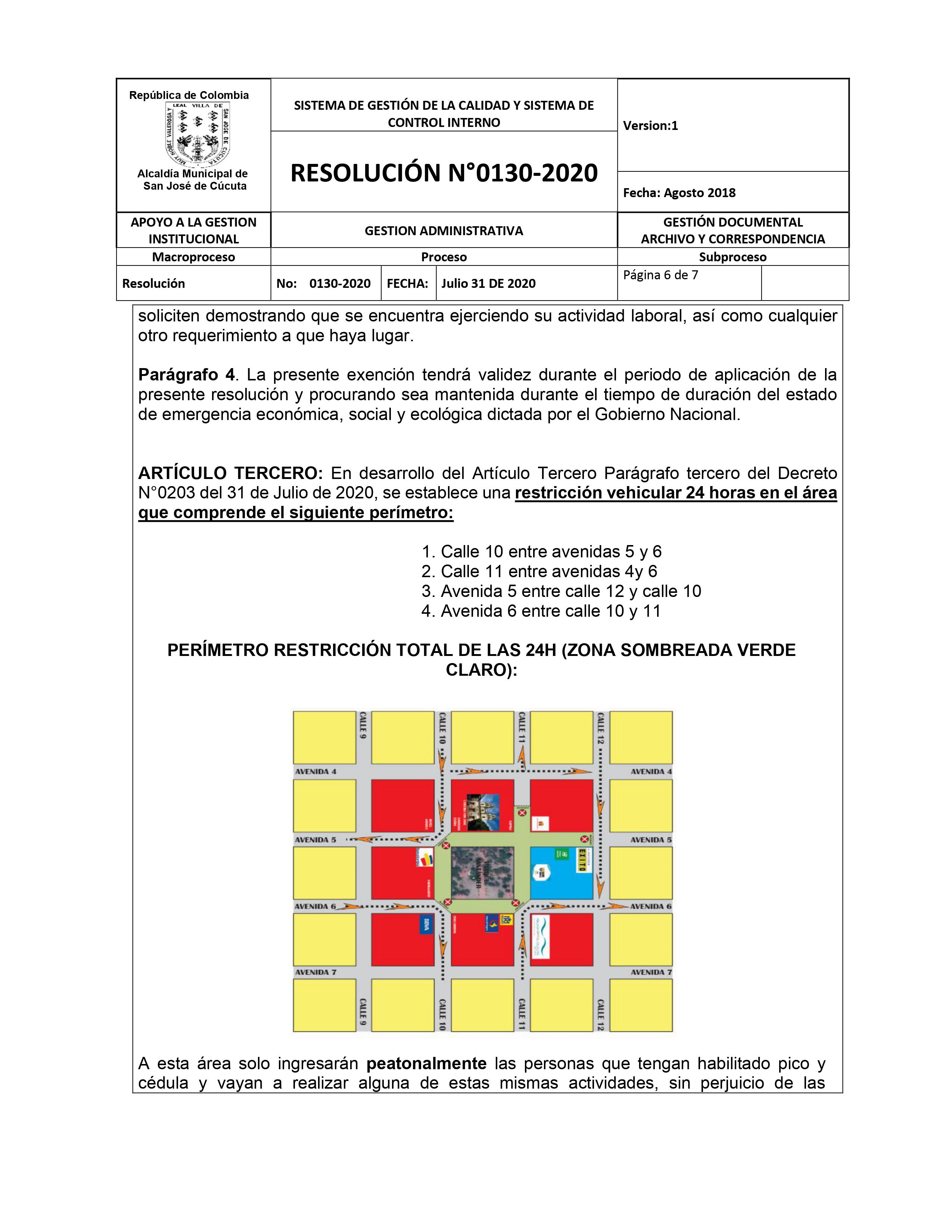 También la resolución habla de una restricción vehicular durante las 24 horas en el siguiente perímetro: calle 10 entre avenidas 5 y 6, calle 11 entre avenidas 4 y 6, avenida 5 entre calle 12 y calle 10 y avenida 6 entre calle 10 y 11.
