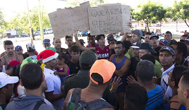 “Ellos no son refugiados, no hay una guerra civil en Venezuela por lo cual no podemos hablar de albergues o refugios. Ellos pueden trabajar en las calles, deambulando como vendedores informales, pero no pueden dormir en estos escenarios deportivos, ni en las calles, ni en los parques, pues no se va a permitir. Esto no es de recursos es de decisiones, de tomar decisiones para que ellos no duerman ni sigan durmiendo acá. Hemos sido permisivos con ellos pero ya hay confrontaciones con los vecinos por eso vamos a tomar decisiones”.