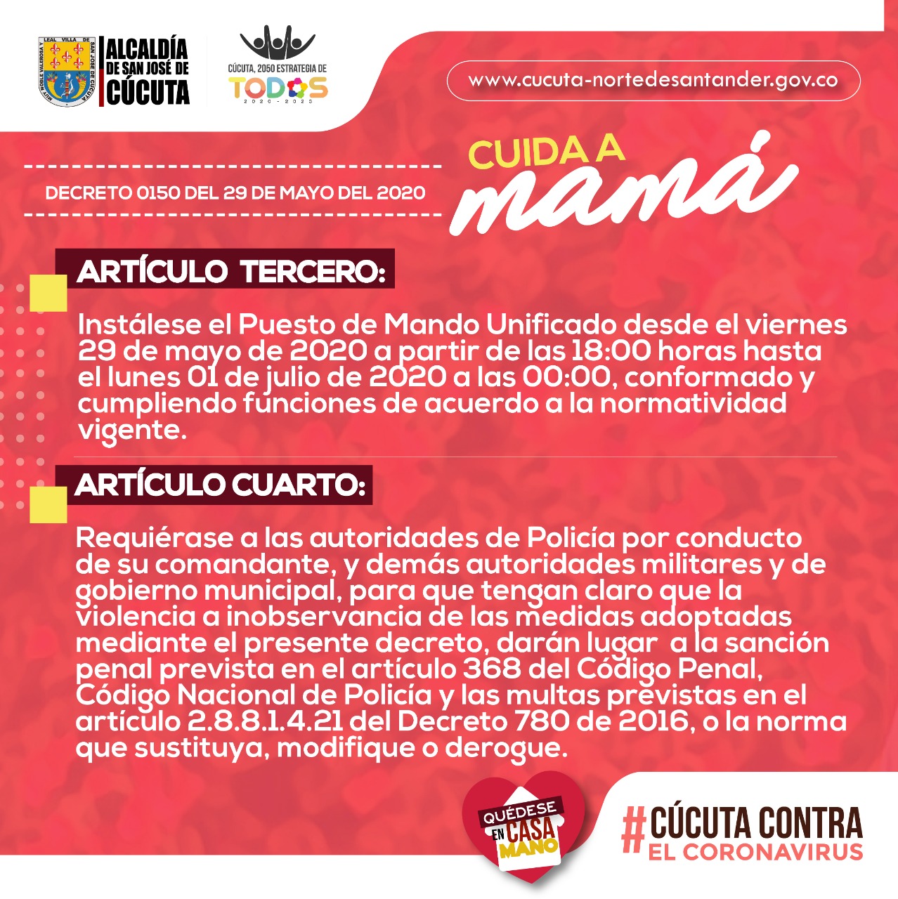 El decreto 0150 del 29 de mayo de 2020, establece que queda prohibido el expendio y consumo de bebidas alcohólicas en Cúcuta a partir de este viernes 29 de mayo, a las 6:00 p.m, hasta este lunes 1 de junio, a las 00:00 horas.