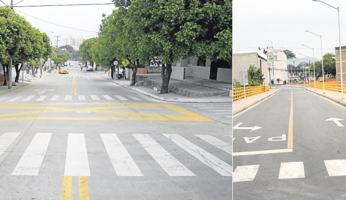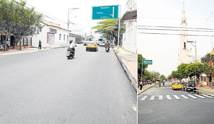 ((Izquierda) Avenida 3 de Claret. Tramo recuperado en pavimento rígido por un valor de $2.455 millones, con recursos del departamento para la Prosperidad Social y del municipio. (Derecha) Recuperación de la calle 12 entre avenida 4 y 6, en La Riviera. Tiene 6 metros de ancho en doble sentido y 946 metros cuadrados de paso peatonal, barandas, señalización y luz led.)