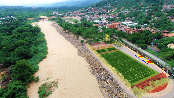 Angarita informó que la obra contará con un área aproximada de 10.500 metros cuadrados en la que se ubicarán varias canchas: una de fútbol en grama, dos de voleibol, dos de baloncesto, dos de banquita, se implementarán labores de embellecimiento paisajístico y de iluminación.