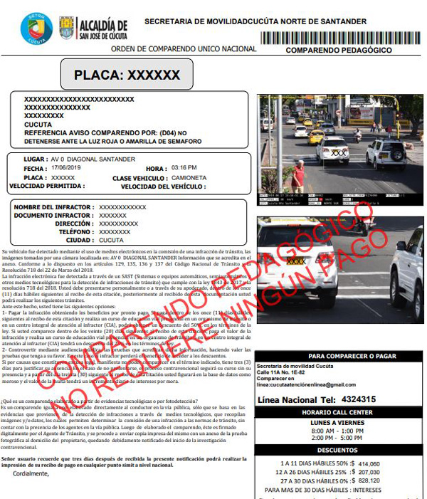 Detalló que el equipo solamente capta la evidencia y que es el policía de tránsito el encargado de corroborar si hubo o no la infracción, una vez validada es enviada al conductor al correo electrónico que aparece registrado en el Runt. En las pedagógicas no va firmada por el agente de tránsito, y no se tiene que pagar ni que acudir a ninguna charla preventiva.