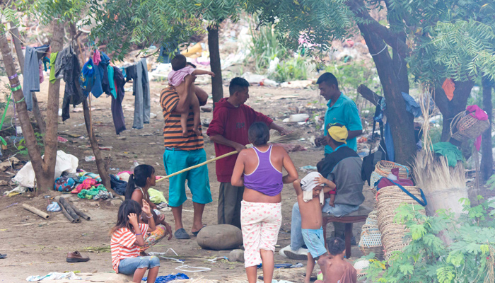Niños y mujeres de esta comunidad indígena de Venezuela deambulan por las calles e invadieron un predio en El Escobal.
