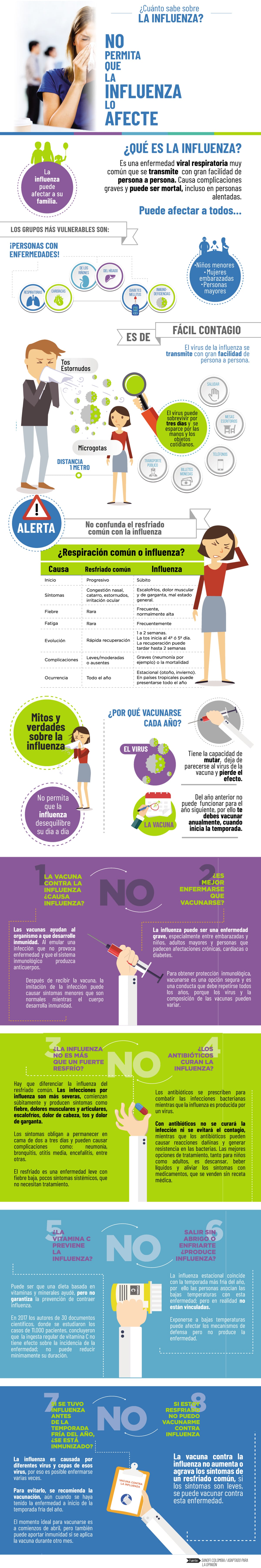 Una cosa es la Influenza, que da estos síntomas mencionados y otra cosa son los resfriados que son causados por múltiples virus, habitualmente con síntomas similares pero menores y de corta duración. Para la Influenza hay vacuna, para el resfriado común no la hay pues los virus que la producen son distintos y múltiples.