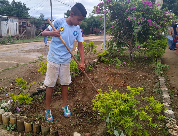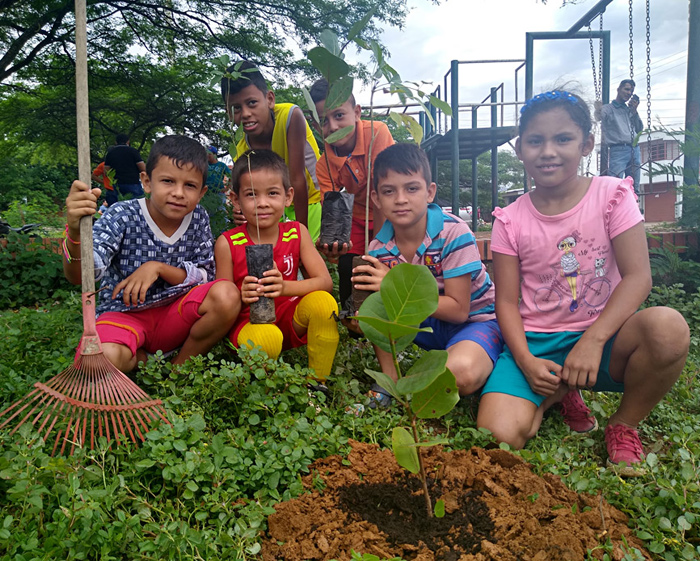 Pese a la labor de más de 30 expertos de la oenegé, los niños no se quedaron atrás, se juntaron y con sus propias manos sembraron árboles en el andén de varias casas y en las canchas.