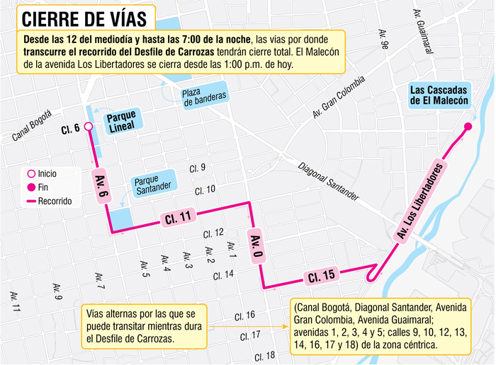 Las autoridades insistieron en no emplear la avenida Los Libertadores entre el puente de Guadua y el antiguo Das, debido a que estará cerrada por la celebración de la feria. Hoy, por ejemplo, su cierre definitivo se produce desde las seis de la mañana.