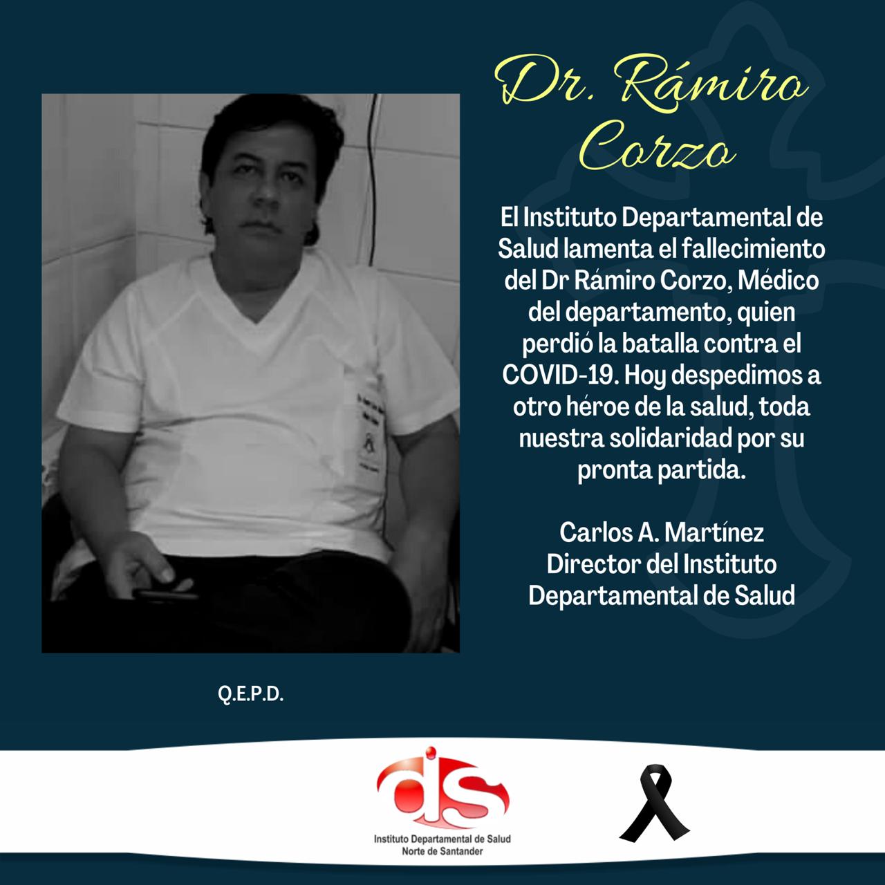 Este miércoles fueron reportadas en Cúcuta las muertes de tres trabajadores de la salud. Entre las víctimas mortales están el médico Ramiro Corzo, adscrito al Instituto Departamental de Salud (IDS), y el enfermero jefe Jonny Andrés Paredes Ortega.