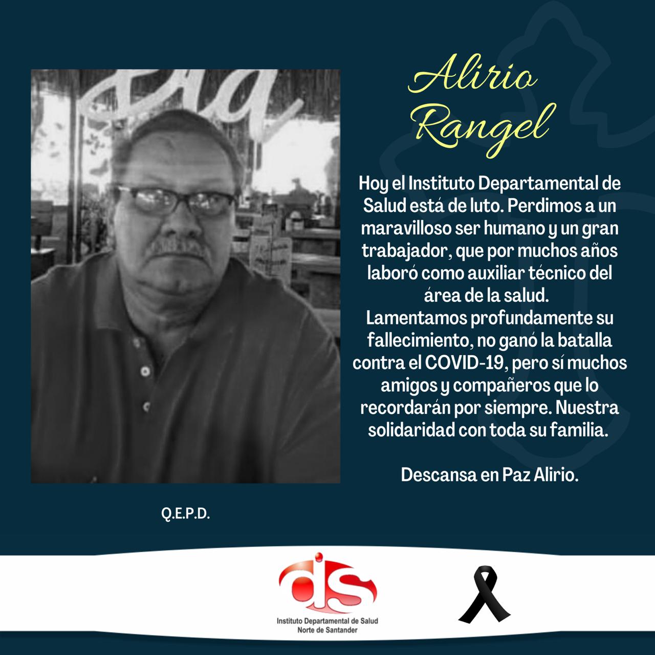 La tercera víctima del sector de la salud es Alirio Rangel, quien trabajaba como auxiliar técnico en el IDS. Ambos decesos fueron lamentados por la directiva del instituto, el cual expresó su solidaridad con las familias.