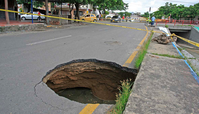 En la calle 10 entre avenidas 13 y 14, en Cundinamarca, se produjo el hundimiento de la vía.