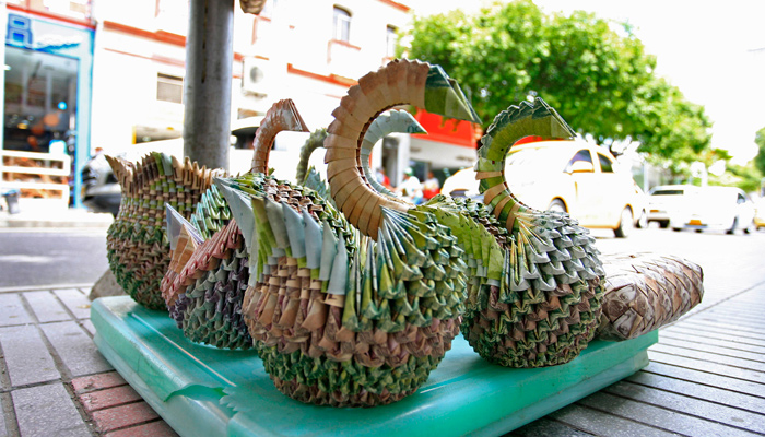 Ante las crisis, surge la innovación. Como muchos saben, el bolívar se ha devaluado en grandes magnitudes, y el poder adquisitivo en Venezuela se ha pulverizado al punto de que una paca de billetes, lejos de ser útil para comprar al menos un desayuno, permite hacer infinidades de figuras artísticas que estos jóvenes han logrado comercializar.