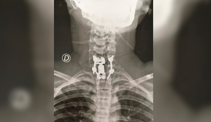 La radiografía muestra el procedimiento de alta complejidad para restituirle las vertebras del cuello.