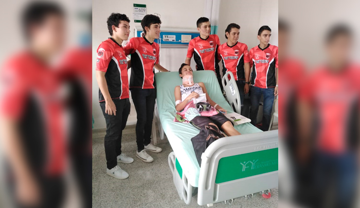 Después de la cirugía fue visitado por sus compañeros del club de ciclismo.