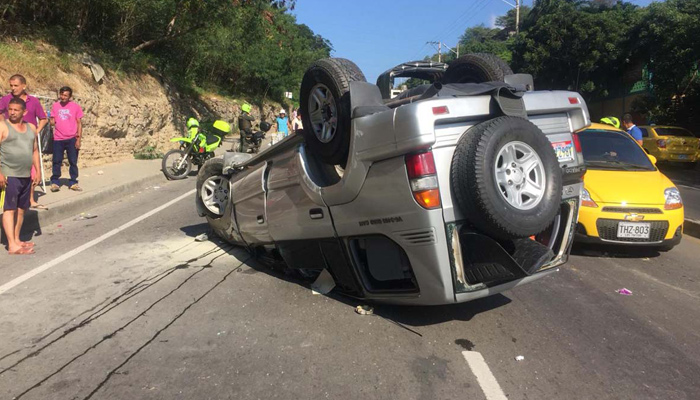 En la subida del indio, este campero se volcó cuando su conductora intentó esquivar a un motorizado que se le cruzó en su camino.