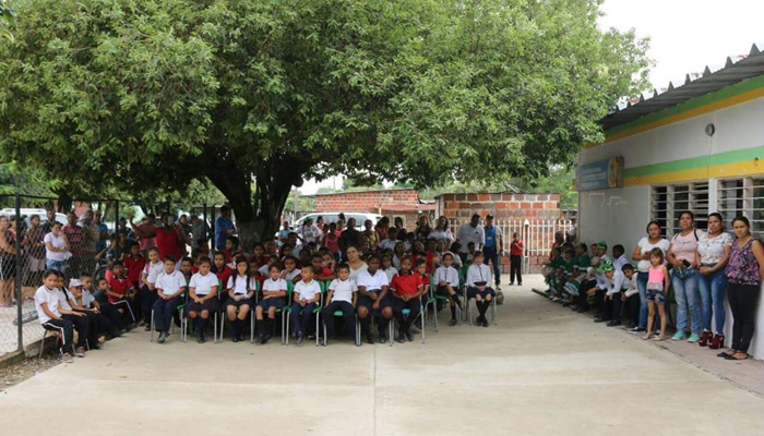 En el recorrido que hizo Rojas en compañía de miembros de su gabinete y líderes comunales, los primeros en recibir las obras de infraestructura fueron los estudiantes del colegio Técnico Buena Esperanza, en la vereda El Plomo, donde se adecuó el comedor infantil, baterías sanitarias y el piso de la institución.