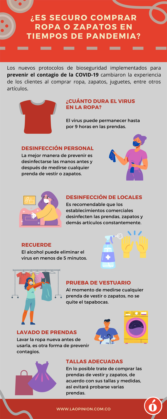 La Opinión consultó con Daniel Contreras, secretario ejecutivo del comité médico de la Secretaría de Salud de Cúcuta, quien señaló que, comprar ropa o zapatos en la situación actual, si puede generar un alto riesgo de contagio, ya que el virus permanece hasta por 9 horas en las prendas.