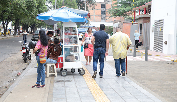 Para estos últimos usuarios hay tramos de andenes en los que las losas guías por donde deben movilizarse los ciegos están ocupadas por casetas o por camionetas.