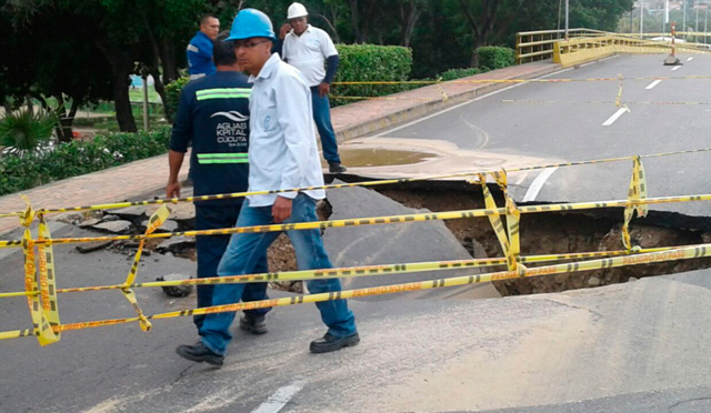 La Secretaría de Tránsito de Cúcuta y la Policía acordonaron el lugar y cerraron el carril en sentido San Mateo-centro de la ciudad (oriente-occidente), debido al grave hundimiento.