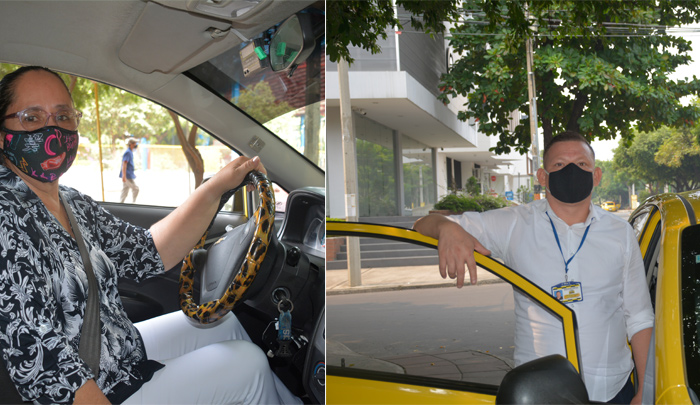 (Olga Benítez es otra de las voceras del gremio de taxista, tiene 57 años y lleva 27 en el oficio. Juan Carlos Bastos lleva 14 años como taxista, es el presidente del gremio.)