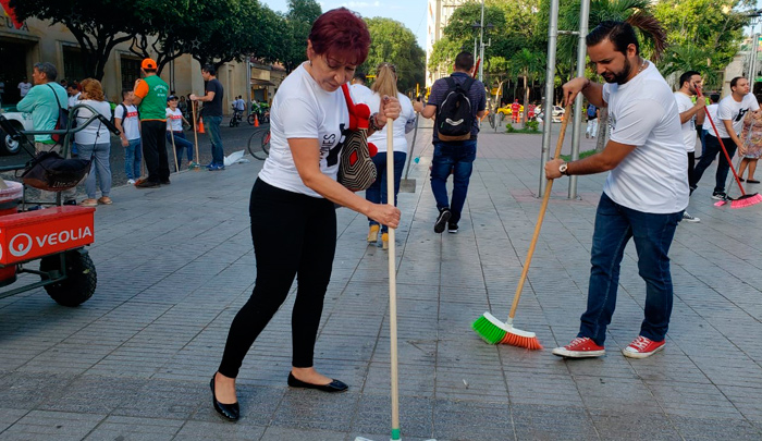El alcalde Jairo Yáñez llegó pasadas las 7:00 de la mañana junto a su gabinete, con escoba en mano, para liderar esta jornada que cuenta con la colaboración del Cuerpo de Bomberos y la Defensa Civil.