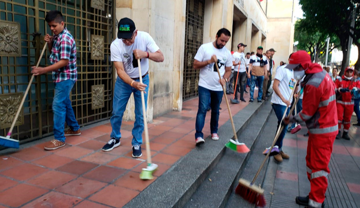 El propósito es empezar por esta zona céntrica, y dichas labores se irán extendiendo por al ciudad. En medio de la jornada también lavaron y limpiaron la estatua del General Santander.