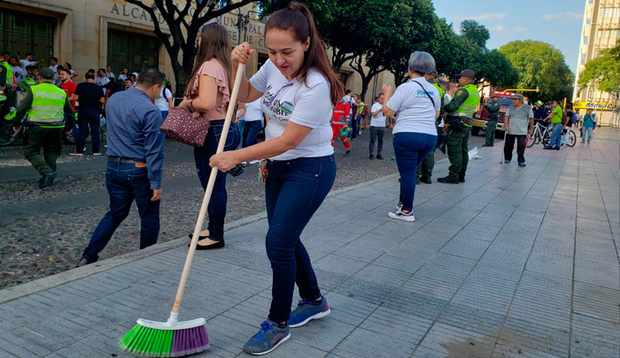 El alcalde de Cúcuta llegó temprano con escoba y megáfono en mano.