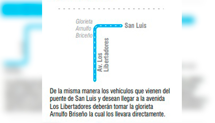 Iscalá pidió a los conductores estar tranquilos, porque por ahora no se verá interrumpido el paso por el tramo que comprende la primera fase de los trabajos. En esta primera semana se empezó con la instalación de la señalización vertical para orientar a los usuarios de la vía sobre las rutas alternas que deben tomar (conductores y peatones) y sobre la presencia de los trabajos y obreros.
