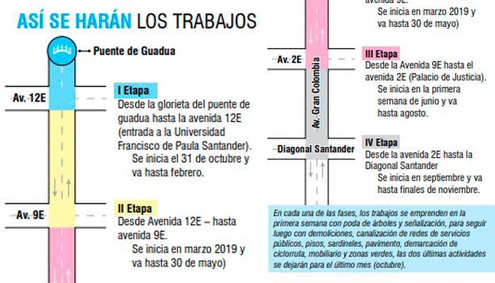 La primera fase comprende desde la glorieta Arnulfo Briceño hasta la avenida 12 E (esquina de la Universidad Francisco de Paula Santander.